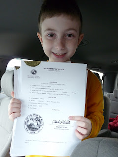Matthew is home sick from school today so he went along with me to the Secretary of State's office to have our last document apostilled.